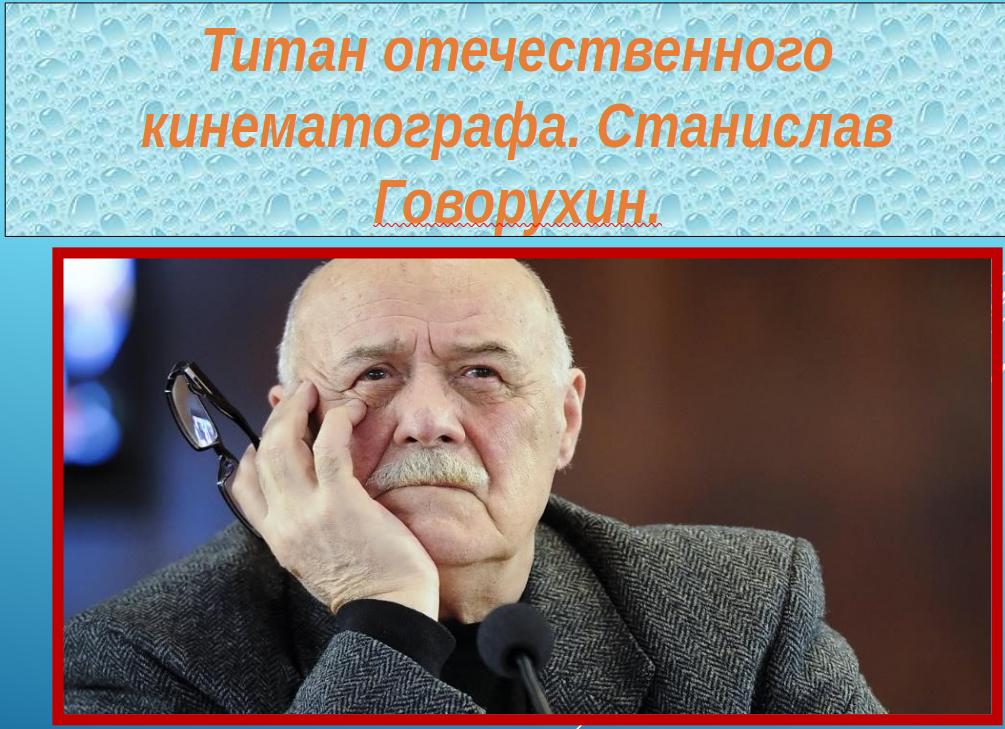 Сегодня мы с учащимися нашей школы, отмечаем юбилей выдающегося деятеля отечественного кинематографа — Станислава Сергеевича Говорухина. Его имя знакомо каждому, кто хоть раз соприкасался с миром кино и искусства.Станислав Говорухин — режиссёр, сценарист, актёр и общественный деятель, который...